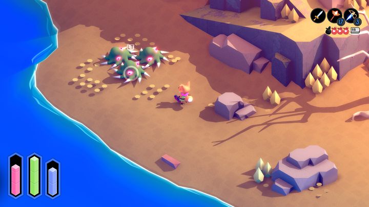 As mentioned in the introduction, the immediate reference for many elements of Tunic, gameplay included, is Zelda’s 2D adventures. Whilst we’ve discussed the weakness in using such framing, elements of Tunic’s gameplay certainly are certainly familiar to that aforementioned series as well as some evident Dark Souls inspiration. Shrines act similar to bonfires, some of the magic-based weapons remind me of the elemental wands often dotted across Link’s adventures, and Tunic’s stamina (and dodge roll) system definitely brings FromSoftware’s infamous combat design to the forefront of my mind.
