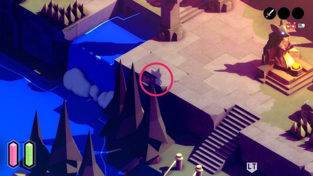 Wherever you find yourself in Tunic, there are secrets and hidden paths to be found. Akin to how most abilities are gated by knowledge, the same is true of these hidden tidbits. The majority of Tunic’s shortcuts and hidden areas are kept a secret because of the viewpoint the game employs. Tunic employs an off-centre isometric camera aside from when you’re locked on to enemies, and the level design is built on this, with trees and rock faces used to disguise secret paths and even hide the occasional chest. The amount of times I bimbled down a path only to discover that I had reemerged in a location I had just visited not 10/20 minutes before was far too many to count. As with many parts of Tunic, a careful eye would have let me discover said path much earlier, I clearly need to sharpen my observational skills!